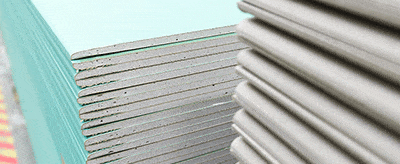 Une plaque de platre hydrofuge pour la salle de bain. Elles obstruent les pores du platre afin de favoriser le ruissellement de leau sur la plaque.
