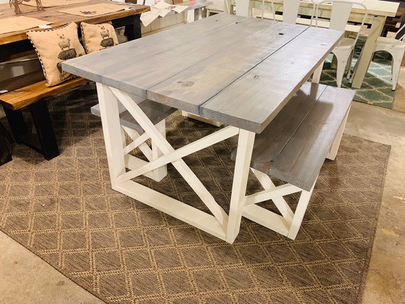 Rustic Small Farmhouse Table With Benches With Charcoal Etsy