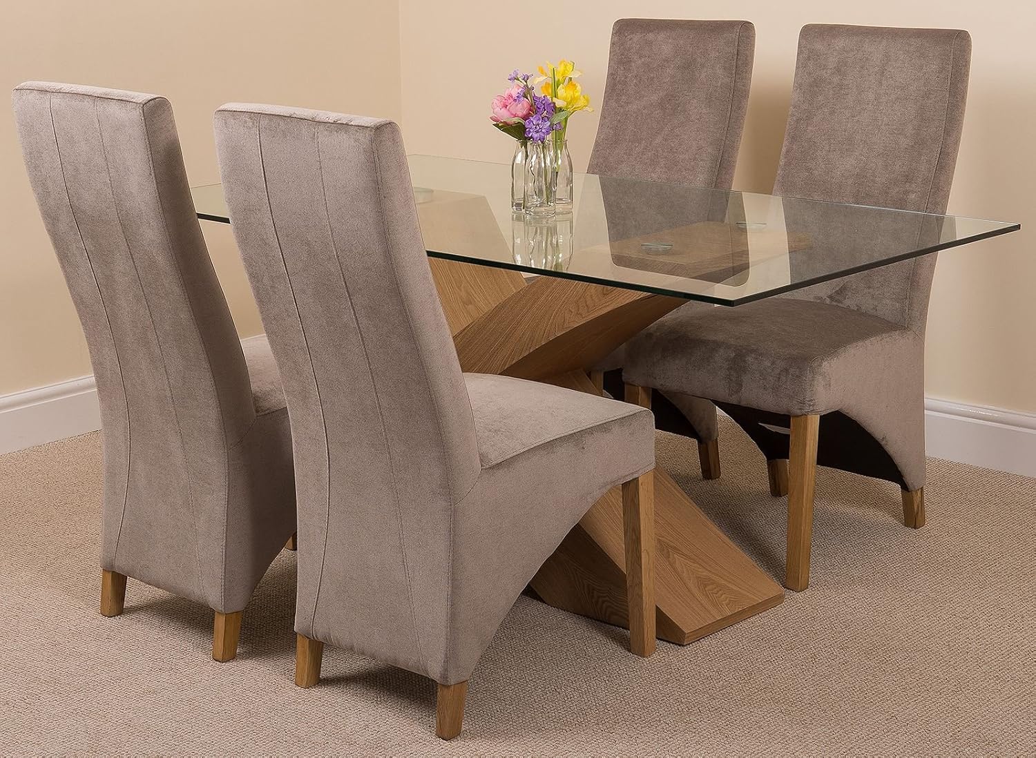 Valencia Small Oak 160cm Modern Glass Dining Set Table And 4 Grey