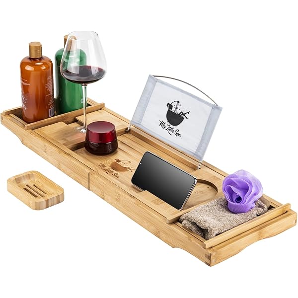Turn your bathroom into a spa with these relaxing bath. Bathtub trays are a great solution for this. Premium bamboo bath trays with extending sides reading rack tablet holder cell phone tray and luxury wine glass holder natural bamboo color 44 out of 5 stars 13.