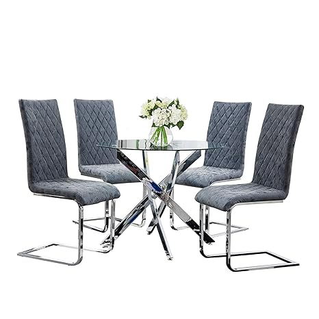 Gizza Transparent Round Glass Dining Table And 4 Distressed